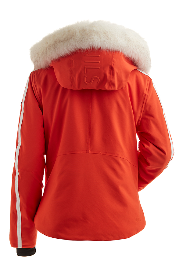 Sporty 2-color jacket with faux fur. This jacket features 2 handwarming pockets, a chest pocket and sleeve pocket. This jacket is made of a 4-way stretch fabric and is designed with custom trims and YKK zippers. CBL 25". Waterproof/Breathable rating 2