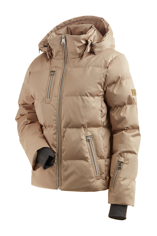 CONTENT: Shell- 94% Polyester / 6% Spandex, Lining- 100% Polyester, Insulation- Primaloft ® Synthetic Down