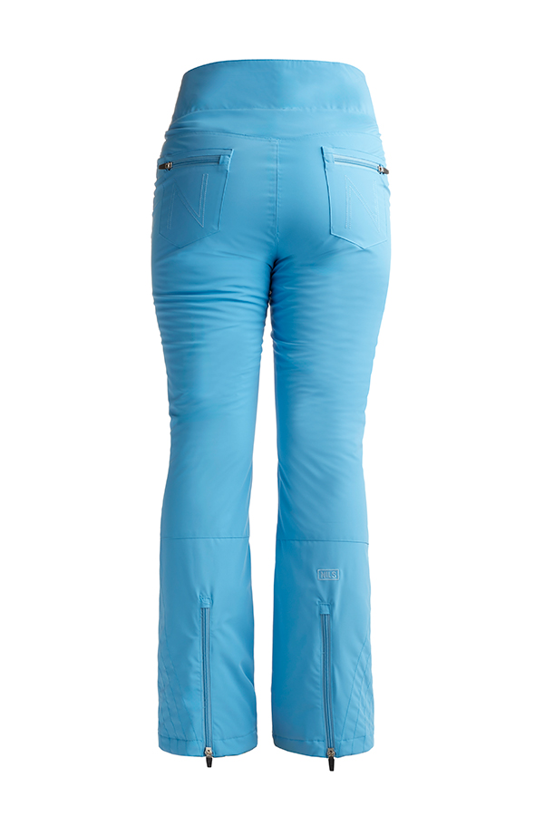 Slim fit, high waisted 4-way stretch insulated ski/snowboard jean style pant. This pant features an adjustable interior waistband, 2 back zippered pockets, and a coin pocket. This pant has zippered gussets at CB and beautiful stitching on the lower leg. W