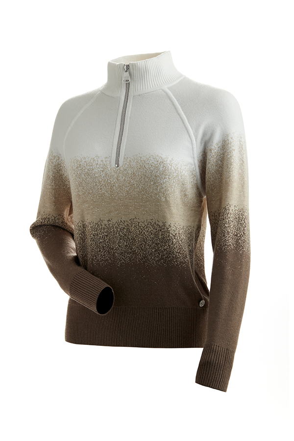 #60625$155.001/4 zip sweater with beautiful cascading color down the front. This double knit sweater is made from rich and luxurious yarns that will keep you warm on and off the slopes.