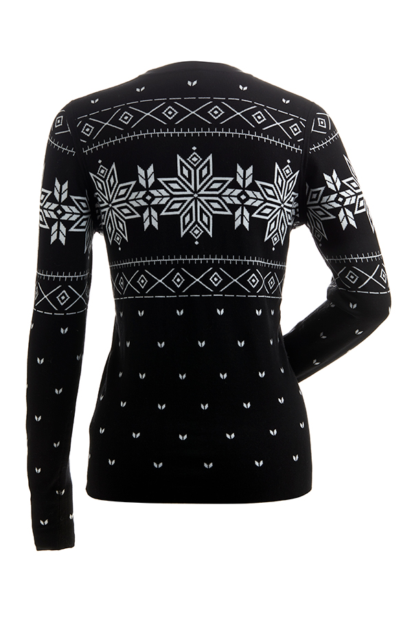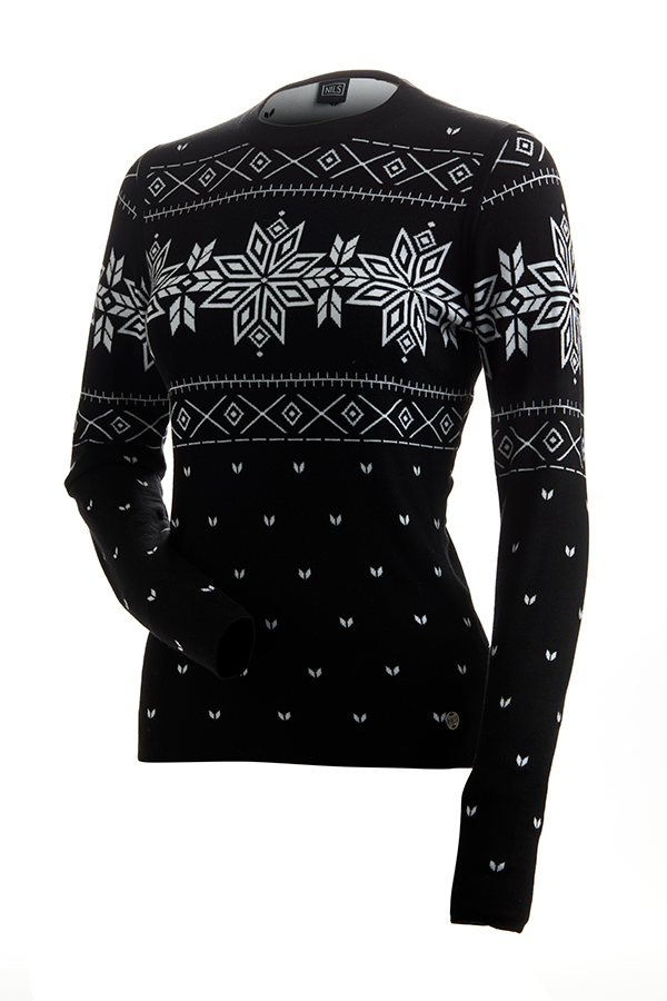 Long sleeve knit crewneck in a beautiful Nordic design. This double knit top is made from rich and luxurious yarns that will keep you warm on and off the slopes.