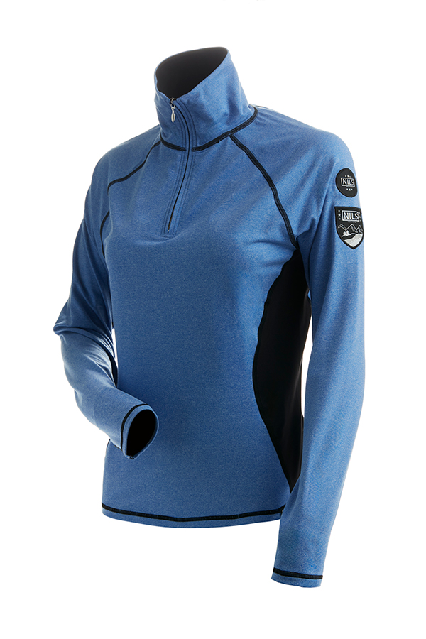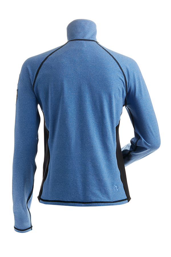 Lightweight colorblocked t-neck with patches on left sleeve and contrast stitching throughout. This top features anti-odor, anti-static and anti-microbial properties.